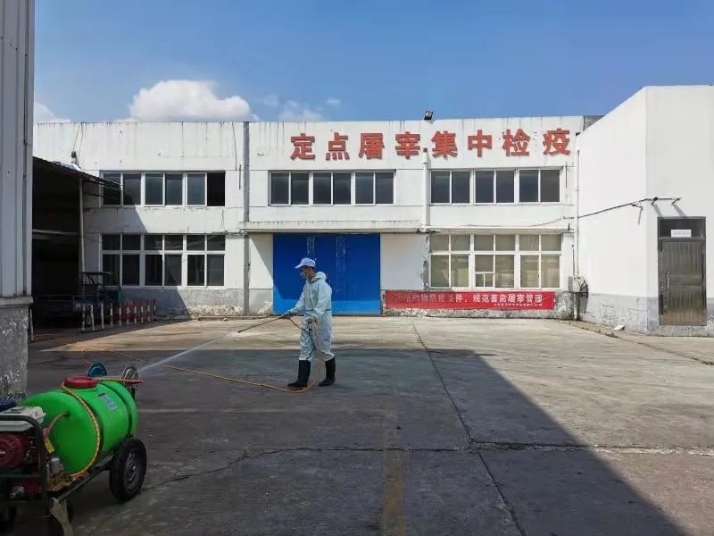 落實消毒防疫,全力保障安全。每日對廠區(qū)進行全面消殺,做好辦公樓、屠宰車間、豬肉批發(fā)市場等人員集中區(qū)域的衛(wèi)生清潔和通風(fēng)、消毒等工作,減少病毒滋生和傳播途徑。